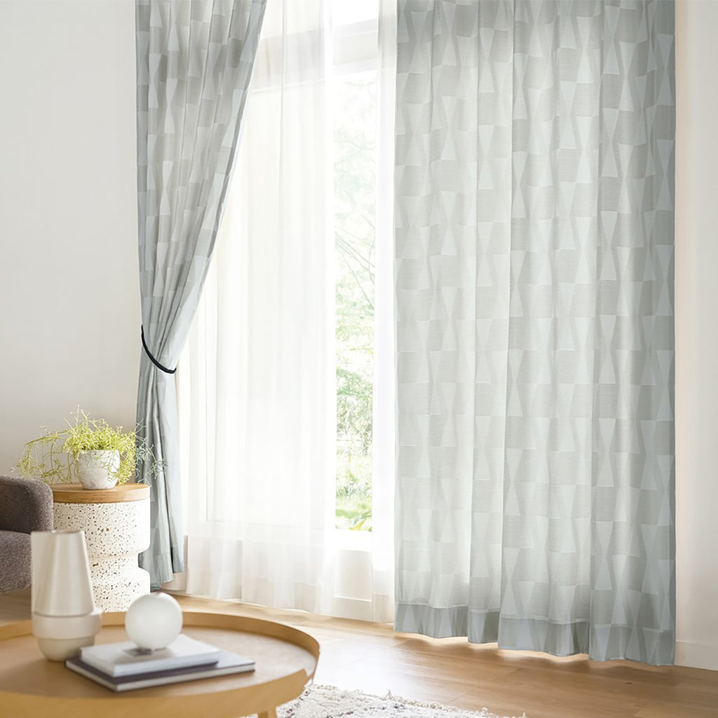 窓辺を彩る軽やかな北欧パターン。インテリアに取り入れやすい柔らかな色味です。