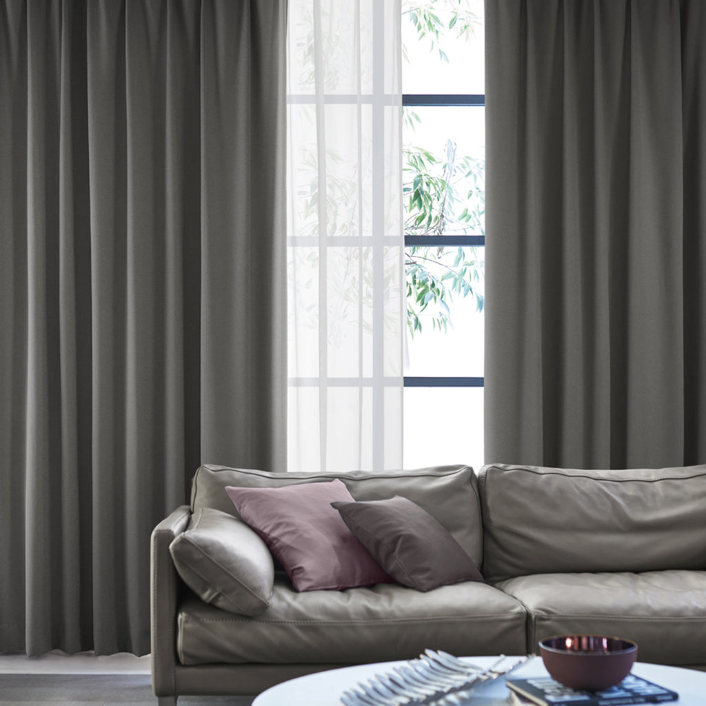 ヒダ山を3つ取り、レール寸法に対して約2倍の生地を使用します。ゆったりとした曲線の美しいドレープが高級感を演出します。生地の重なりが多いため、保温性が上がります。