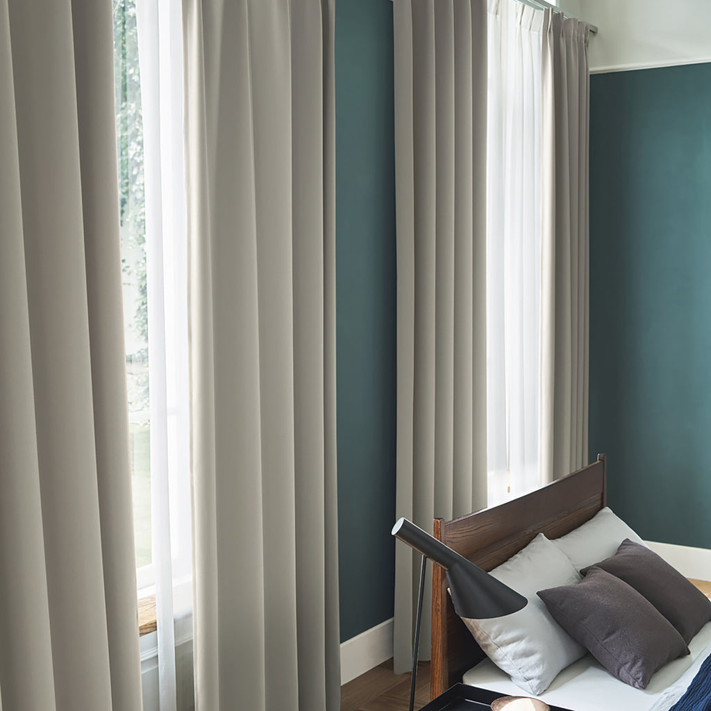 ヒダ山を3つ取り、レール寸法に対して約2倍の生地を使用します。ゆったりとした曲線の美しいドレープが高級感を演出します。生地の重なりが多いため、保温性が上がります。