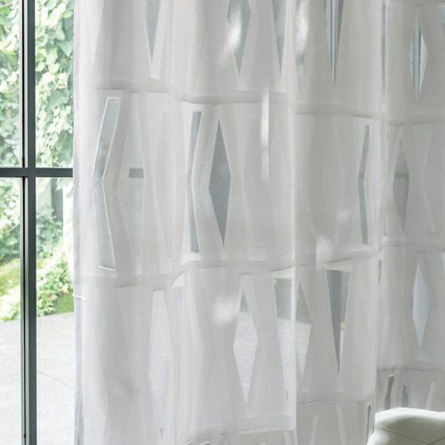 フロントカットで透ける幾何柄が繊細なデザインです。一枚掛けでも、レースと合わせても軽やかな装いに。