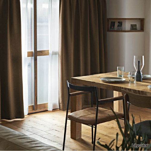ヒダ山を3つ取り、レール寸法に対して約2倍の生地を使用します。ゆったりとした曲線の美しいドレープが高級感を演出します。生地の重なりが多いため、保温性が上がります。