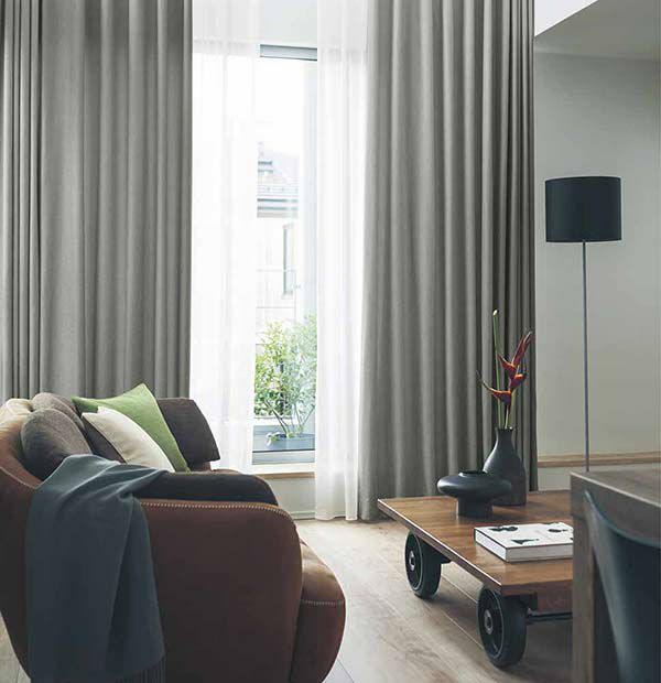 ヒダ山を3つ取り、レール寸法に対して約2倍の生地を使用します。ゆったりとした曲線の美しいドレープが高級感を演出します。生地の重なりが多いため、保温性が上がります。