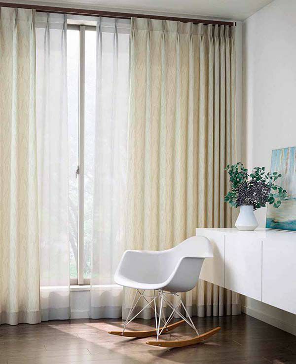 ヒダ山を3つ取り、レール寸法に対して約2倍の生地を使用します。ゆったりとした曲線の美しいドレープが高級感を演出します。生地の重なりが多いため、保温性が上がります。