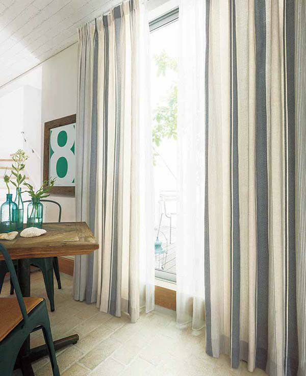 ヒダ山を2つ取り、レール寸法に対して約1.5倍の生地を使用します。すっきりとしたウェーブで、大きな柄デザインを引き立てます。ドレープが深すぎないのですっきりした窓辺になります。