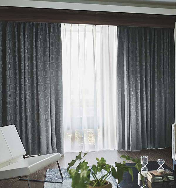 ヒダ山を3つ取り、レール寸法に対して約2倍の生地を使用します。ゆったりとした曲線の美しいドレープが高級感を演出します。生地の重なりが多いため、保温性が上がります。