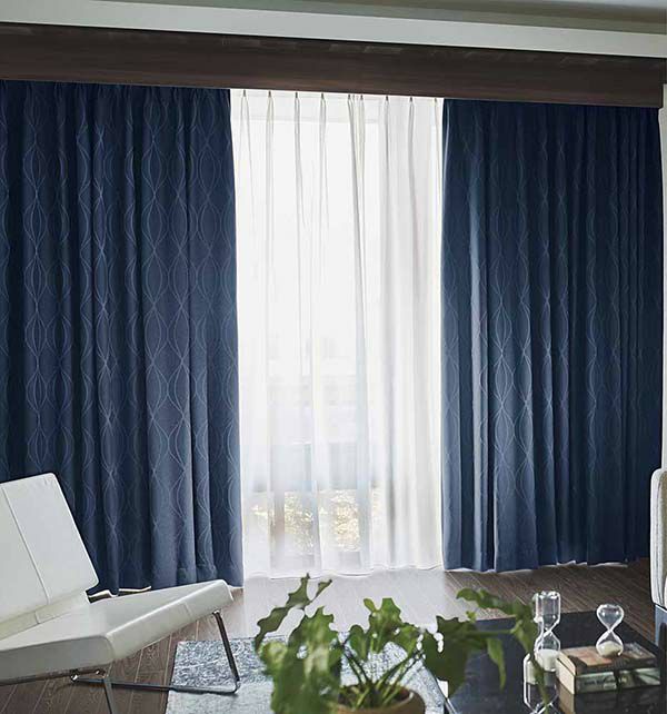 ヒダ山を3つ取り、レール寸法に対して約2倍の生地を使用します。ゆったりとした曲線の美しいドレープが高級感を演出します。生地の重なりが多いため、保温性が上がります。