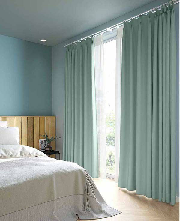 ヒダ山を3つ取り、レール寸法に対して約2倍の生地を使用します。ゆったりとした曲線の美しいドレープが高級感を演出します。生地の重なりが多いため、保温性が上がります。