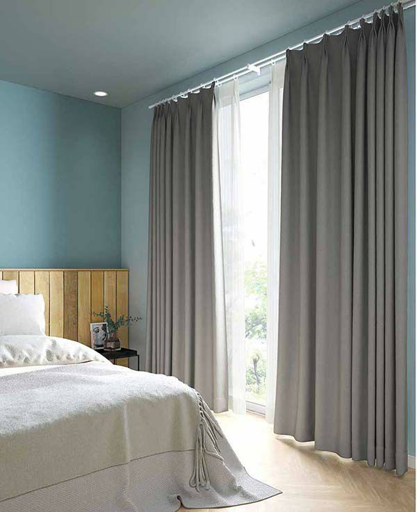 ヒダ山を3つ取り、レール寸法に対して約2倍の生地を使用します。ゆったりとした曲線の美しいドレープが高級感を演出します。生地の重なりが多いため、保温性が上がります。