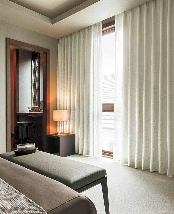 ヒダ山を3つ取り、レール寸法に対して約2倍の生地を使用します。ゆったりとした曲線の美しいドレープが高級感を演出します。生地の重なりが多いため、保温性が上がります。