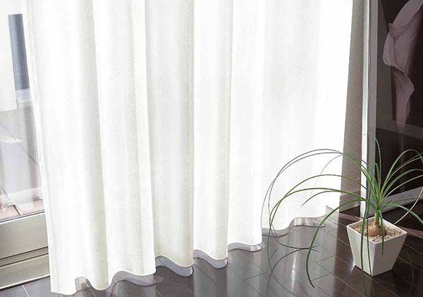 ヒダ山を3つ取り、レール寸法に対して約2倍の生地を使用します。ゆったりとした曲線の美しいドレープが高級感を演出します。生地の重なりが多いため、保温性が上がります。