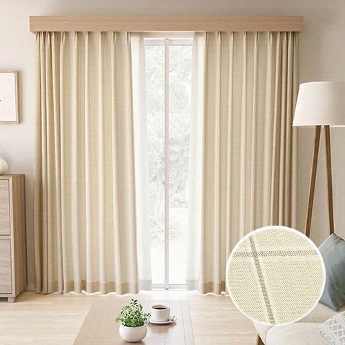 【形態安定加工仕上げ】優しいラインのチェック柄と綿のような軽やかな素材感がナチュラルなカーテン
