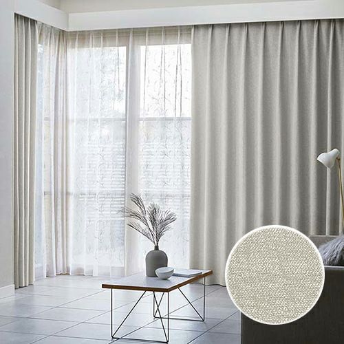 ヒダ山を3つ取り、レール寸法に対して約2倍の生地を使用します。ゆったりとした曲線の美しいドレープが高級感を演出します。生地の重なりが多いため、保温性が上がります。