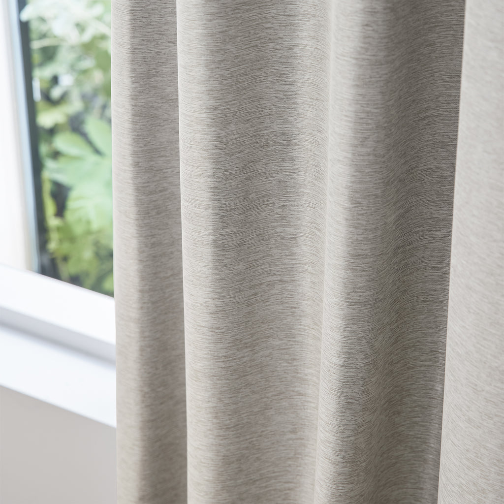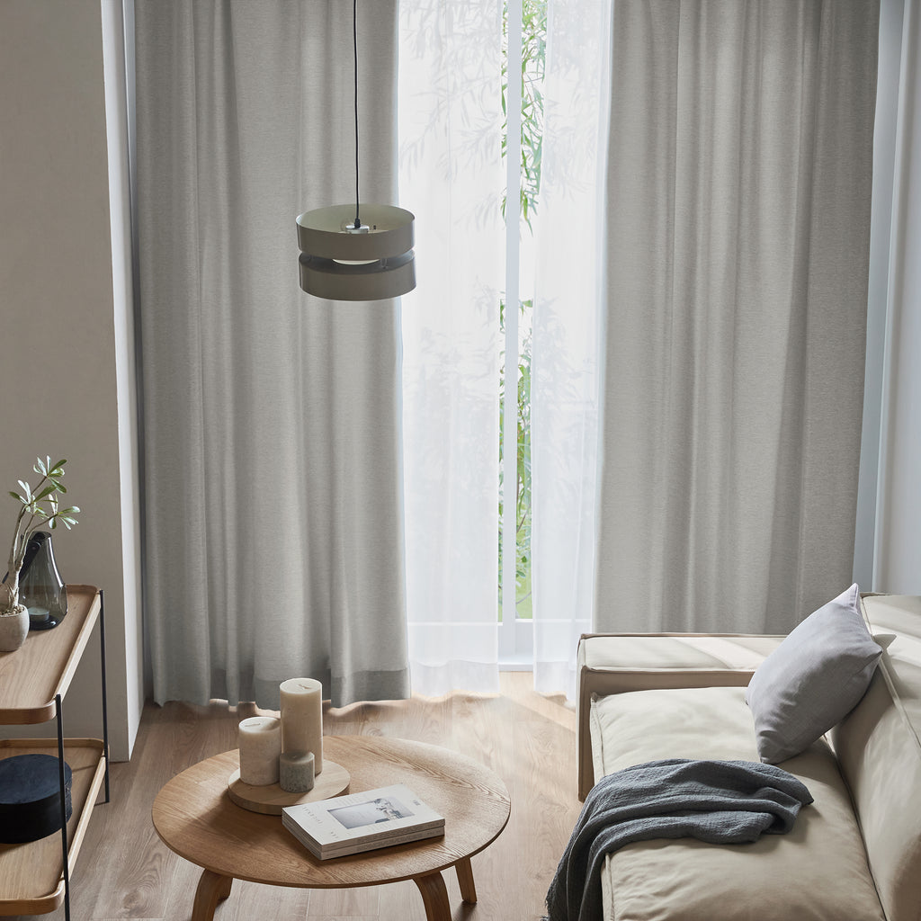 【形態安定加工仕上げ】シンプルな空間に奥行きを与えるしっかりとした生地感の防炎遮光ドレープ。