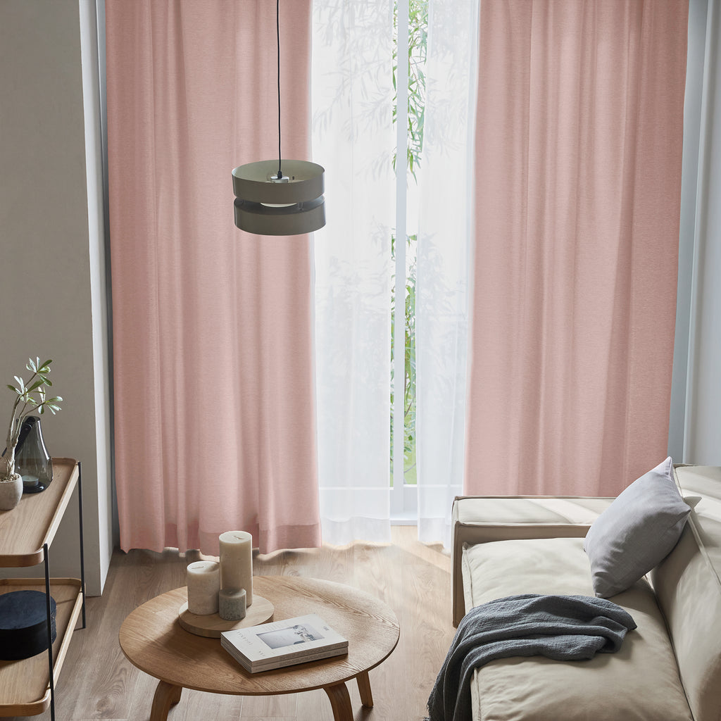 【形態安定加工仕上げ】シンプルな空間に奥行きを与えるしっかりとした生地感の防炎遮光ドレープ。