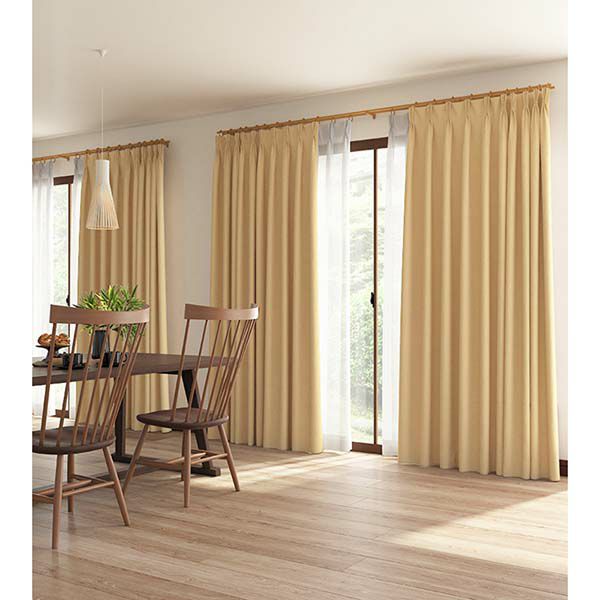 ヒダ山を2つ取り、レール寸法に対して約1.5倍の生地を使用します。すっきりとしたウェーブで、大きな柄デザインを引き立てます。ドレープが深すぎないのですっきりした窓辺になります。