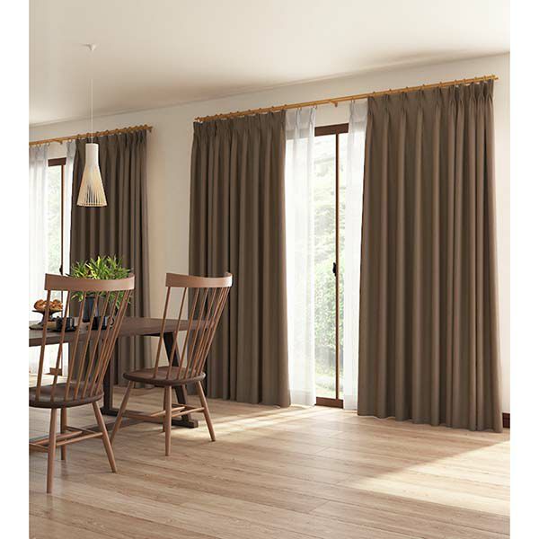ヒダ山を2つ取り、レール寸法に対して約1.5倍の生地を使用します。すっきりとしたウェーブで、大きな柄デザインを引き立てます。ドレープが深すぎないのですっきりした窓辺になります。