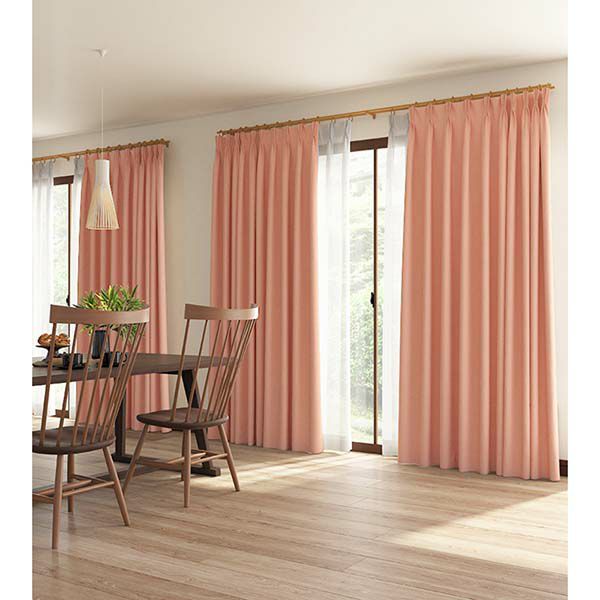 ヒダ山を2つ取り、レール寸法に対して約1.5倍の生地を使用します。すっきりとしたウェーブで、大きな柄デザインを引き立てます。ドレープが深すぎないのですっきりした窓辺になります。